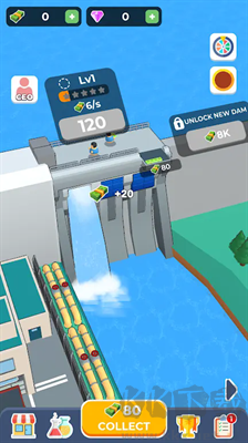 3、通過從大壩放水來賺取利潤。單獨升級大壩的每個部分以增加您的收入。