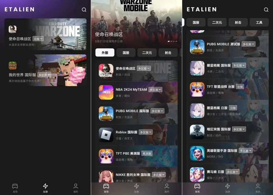 外星人加速器是一款可以幫助大家解決游戲卡段、高延遲等網(wǎng)絡(luò)問(wèn)題的手游加速器應(yīng)用,他不僅支持全球所有的正規(guī)的手機(jī)游戲,還提供了很多熱門(mén)新游,各種各樣的游戲類(lèi)型都有提供,用戶(hù)在外星人加速器中喜歡那個(gè)游戲點(diǎn)擊一鍵免費(fèi)加速即可暢玩,我們致力于幫助大家解決不流暢卡頓的問(wèn)題,讓大家玩游戲玩的更過(guò)癮。