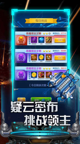 2、收集硬幣和升級道具。將飛機升級至完全殺傷能力,并實現(xiàn)驚人的戰(zhàn)斗力。