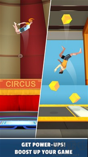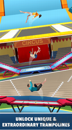 在模式上與跳水不同的是,不再是一級級逐漸升高,而是只在一張蹦床上使勁地跳,而且跳完一次后不會停止,會一直跳下去。很考驗你的耐力和注意力。悄悄靠訴你們:有時候就得茍住,不要一下子轉太多圈,那樣容易失誤,要慢慢玩,活得越久,拿的金幣才越多(? ˙o˙)?
