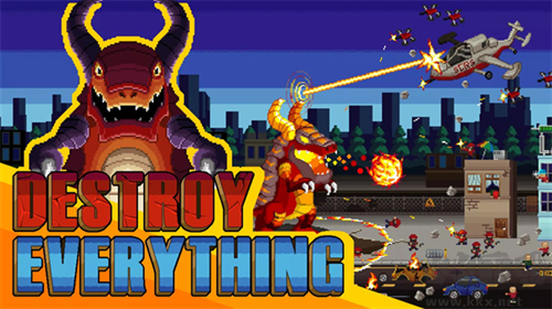 2、開始你的破壞狂歡,穿越風(fēng)格各異精心設(shè)計(jì)的像素風(fēng)場景,把擋住你去路的一切統(tǒng)統(tǒng)毀滅。有沒有想過一頭巨大的怪獸摧毀西部小鎮(zhèn)是什么樣子;