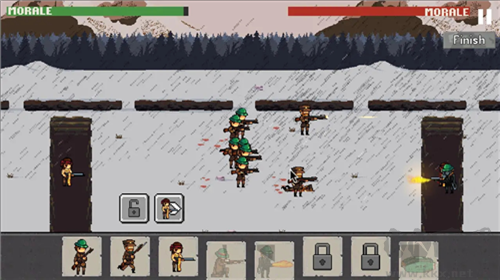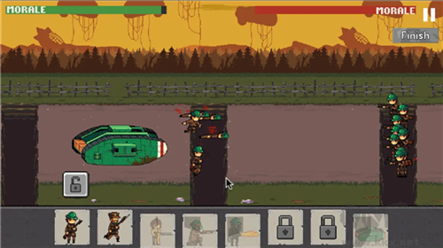 2)點左下角買兵,兵預(yù)設(shè)在戰(zhàn)壕里,可以點擊命令去攻擊,但如果敵方火力正猛,就不要讓他們?nèi)ギ?dāng)炮灰了。之后一步步向敵方國家前進,在戰(zhàn)斗中途每次殺敵都可以賺取點數(shù)并且升級,成為更強的部隊,同樣,敵人也會一起升級面對越來越困難的戰(zhàn)斗……