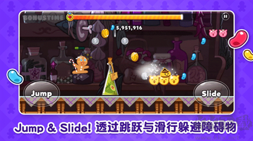 1、利用跳躍與滑行,獲得果凍或閃避障礙物!