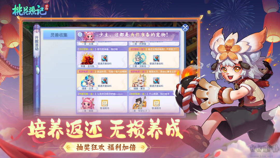 2. 青春不散場,福利不打烊,《桃花源記》手游七周年福利慶典,全新可進階魂獸「扶芊」、三星靈獸「綠瑩」魅力來襲,更有多重周年狂歡活動,三星靈獸「北斗」、圣階精靈「花瑤」限時贈送。