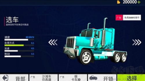 4、各種大型卡車任你選擇,游戲一開始會送一輛最基礎的卡車,后面其他的汽車都需要自己去購買;
