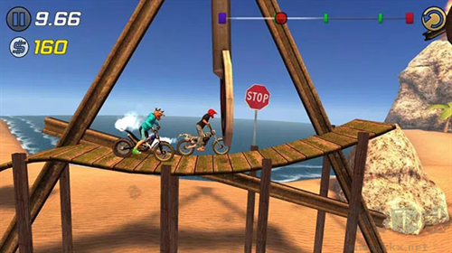 1、極限摩托3設(shè)計了一套全新的背景,將競技場地搬到了擁有開闊景致的海邊,而高架凌空的場地設(shè)施,不僅讓你可以一覽美麗景色,也帶來了臨空失重的刺激。