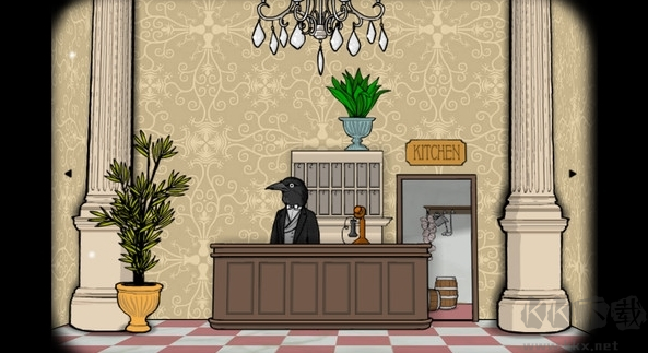 2、進(jìn)入游戲后,玩家可以通過箭頭來移動,點(diǎn)擊【kitchen】黃色牌子里面的任何物品即可進(jìn)入廚房