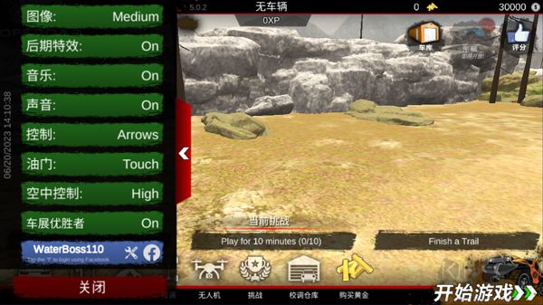 3、點擊左上角的白色箭頭可回到游戲主界面,左側(cè)的紅色按鈕就是游戲設置,在這可設置圖像高低音效和油門等功能