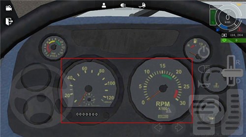 1、系好安全帶,按起止按鈕開動卡車;在屏幕的右側(cè),將它移到“d”位置。