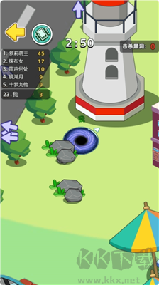 2、游戲中玩家需要控制黑洞吸收周圍的物品,在限定時間內(nèi)獲得積分最高的玩家取得最終勝利。