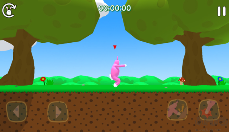 4、進(jìn)入游戲如圖,游戲采用了橫版移動操作,玩家需操縱兔子人前進(jìn)跳躍;