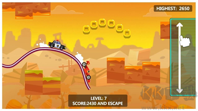 空中追車逃生手游是一款超級有特色的休閑類型賽車競速玩法手機游戲,在游戲中,你將在崎嶇不平的道路上連續(xù)駕駛汽車,游戲中有很多關(guān)卡,每個關(guān)卡的場景都完全不同,各種關(guān)卡層出不窮,在闖關(guān)的過程中你不能犯任何錯誤,感興趣的玩家快來KK網(wǎng)下載試玩看看吧。