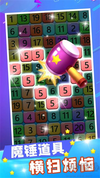 數(shù)字合成大師是一款鍛煉思維的數(shù)字休閑闖關(guān)游戲,在這款游戲中每個數(shù)字都有不同的顏色,玩家要在最短的時間里將這些數(shù)字進合成,只有這樣才能更快通關(guān),在解決不了的數(shù)字,玩家能使用道具錘子去將這個數(shù)字敲掉。