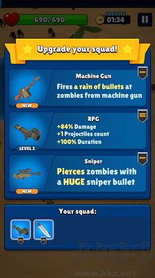 2、一旦你殺死僵尸,你將獲得金幣,你能夠用來晉級(jí)你的小隊(duì)戎行的健康和射擊傷害。