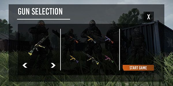 3、然后開(kāi)始選擇你的槍械和對(duì)應(yīng)的皮膚,選擇完成后點(diǎn)擊右下角的START GAME。