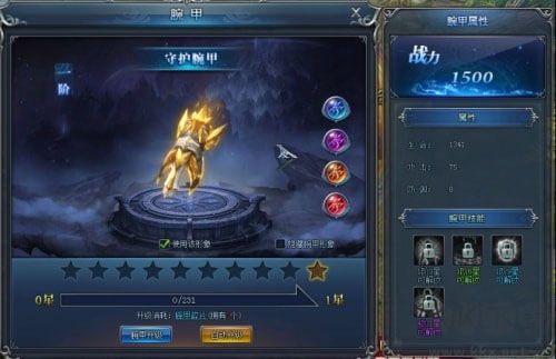 1、腕甲進(jìn)階:使用腕甲碎片可進(jìn)行升級,達(dá)到一定星級時,腕甲會進(jìn)階,進(jìn)階后可更換更多外觀,并且?guī)韺傩蕴嵘?/p>