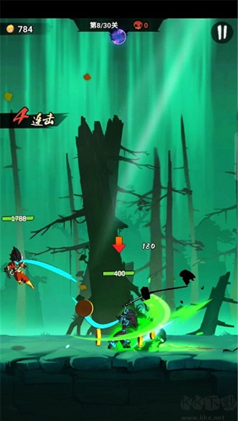 2、暗黑簡約的游戲畫面,熱血刺激的游戲玩法,讓玩家清楚的享受火柴人熱血冒險;