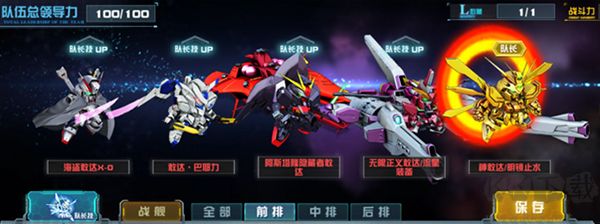 搭配思路:因技能有關(guān)聯(lián),優(yōu)先選擇同時上陣敢達·巴耶力與異端敢達金色機天照。若因SEED系列機體隊伍需要,也可選擇上陣我們的老伙伴——神敢達/明鏡止水替換下異端敢達金色機天照,組成金神格斗隊。