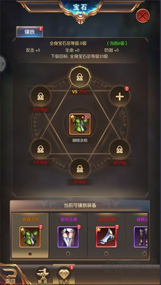1、寶石鑲嵌:得到寶石之后,可以將寶石鑲嵌到有鑲嵌孔的裝備上。鑲嵌之后,寶石的屬性可以疊加到裝備的屬性之上。