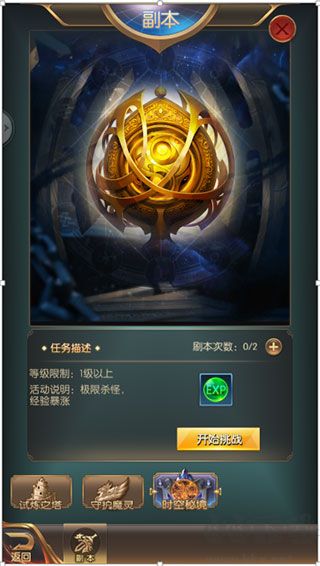 通關條件:6分鐘內盡可能殺足夠多的怪,怪物共出現三波;戰(zhàn)斗期間可使用金幣或鉆石購買鼓舞次數(每次可增加10%的傷害),上限10次;可使用經驗藥水增加效率。