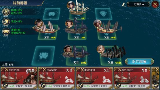 與pve不同,pvp開始后并不能再進(jìn)行部署,所以需要在船只界面中部署完畢之后再進(jìn)行挑戰(zhàn),部署時(shí),合理的陣容搭配和位置擺放尤為重要。船長(zhǎng)之間存在著克制關(guān)系,海軍克制海盜,海盜克制航海士,航海士克制海軍,傳說(shuō)船長(zhǎng)不受任何克制,可以根據(jù)對(duì)方的船長(zhǎng)屬性調(diào)整自己的船長(zhǎng)配置。需要注意的是,攻擊船長(zhǎng)搭配攻擊船只,防御船長(zhǎng)搭配防御船只才能最大限度的提升戰(zhàn)斗力。而船只的擺放位置也有講究,第一排加防御而且會(huì)遭受敵方的集火適合放由防御船長(zhǎng)+防御船只+防御裝備組成的大肉盾,第二排加攻擊適合作為輸出位,而第三排加怒氣和攻速而且相對(duì)安全適合留給輔助。