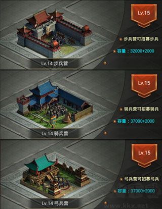 至于三個兵種兵營的先后順序就取決于你上場的武將,如果你有孟獲就把步兵營升高一點;若你派兩個騎兵將上場,就先提升騎兵營吧。