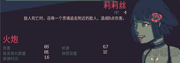 3.不屈意志--當(dāng)黛蒙德血量低于等于半血時(shí),子彈穿透+2,擊退+25%。