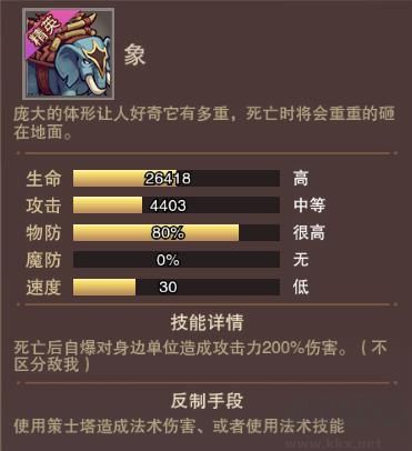 擁有80%物理抗性,死亡后自爆對身邊單位造成攻擊力200%的傷害(不分?jǐn)澄遥?/p>