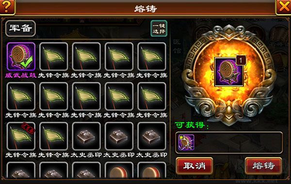 1、首先軍備一共有三種,分為:戰(zhàn)鼓、帥印以及軍旗