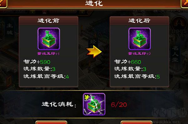3、一件未達(dá)到最高品質(zhì)的軍備可以通過進(jìn)化來提升軍備品質(zhì),就可以突破洗煉屬性的等級(jí)上限