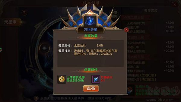 天星技能:攻擊時,有1%的幾率觸發(fā)冰凍幾率提升10%,持續(xù)5秒,冷卻時間為60秒。