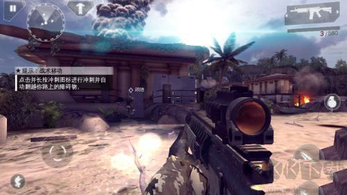 4、開火射擊:說實話,現(xiàn)代戰(zhàn)爭4一開場就讓玩家立馬進入戰(zhàn)火紛飛,硝煙四起的戰(zhàn)場環(huán)境有點讓玩家目不暇接。我玩的時候還沒有搞清楚如何快速移動就不得不跟隨戰(zhàn)友去攻擊敵人,因為不會使用掩體一直被敵人打中