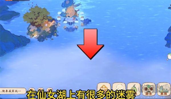 2、這樣就可以去解鎖仙女湖,仙女湖上面有很多的迷霧,具體位置如圖。