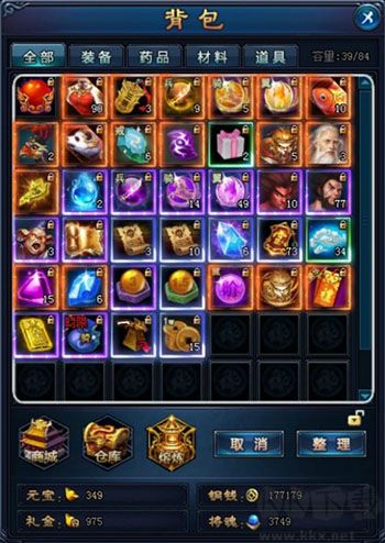 點(diǎn)擊【整理】按鈕,物品會(huì)按需自動(dòng)排列,重復(fù)的道具會(huì)自動(dòng)疊加。