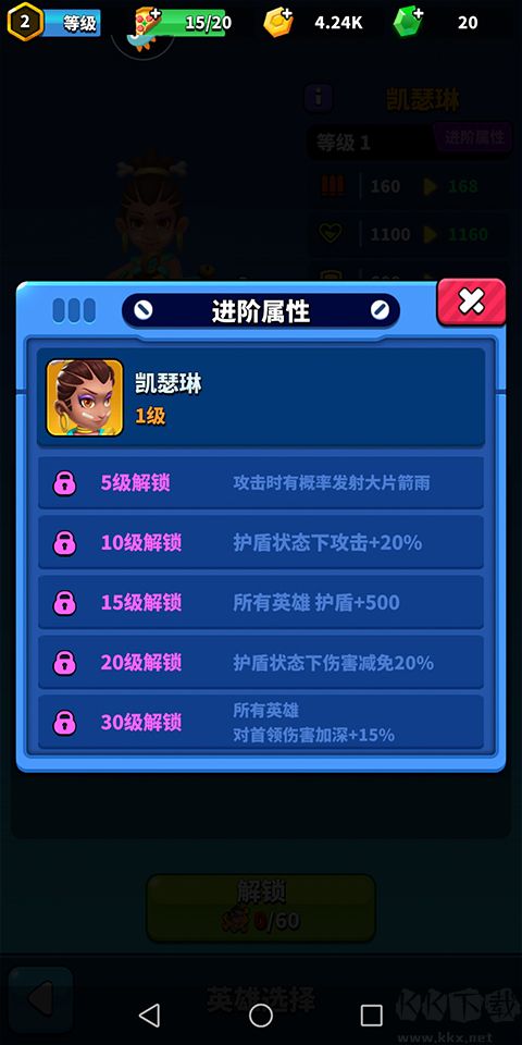接著玩家們進(jìn)入游戲正常狀態(tài)時(shí),可以選擇凱瑟琳角色進(jìn)行使用,該角色可在護(hù)盾狀態(tài)下讓玩家的攻擊率提升20%,而且可自由開啟500次護(hù)盾,讓玩家倍感安全感。