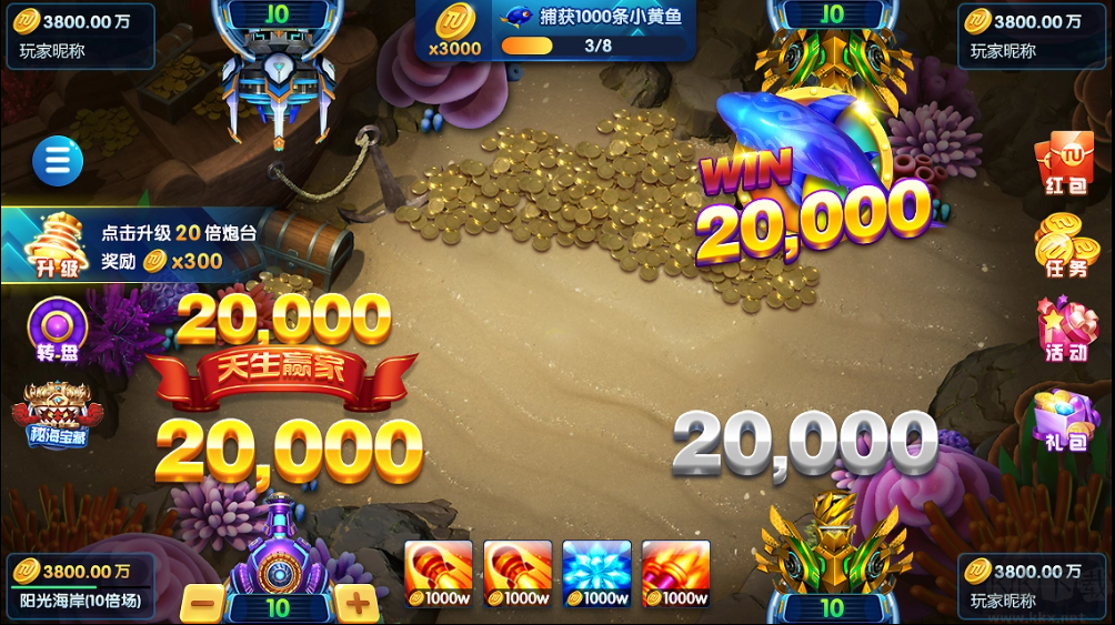 4、千萬炮倍任你升,一炮秒魚無壓力~