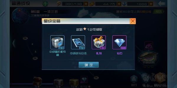 于戰(zhàn)役關(guān)卡中成功通關(guān)相應(yīng)關(guān)卡后,將獲得對(duì)應(yīng)的星級(jí)評(píng)定。當(dāng)每一章的星級(jí)總數(shù)分別達(dá)到 5 星、9 星以及 12 星時(shí),可領(lǐng)取與之對(duì)應(yīng)的星級(jí)寶箱。寶箱內(nèi)包含晉階配件箱,開啟該寶箱即可獲取相應(yīng)的配件 。