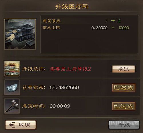在游戲初始階段,時常會認為部隊傷亡是一種負擔,對于兵損存在擔憂。然而,隨著游戲進程推進,我逐漸意識到該建筑的重要性。提升醫(yī)療所等級能夠提高傷兵容納上限,儲存一定數(shù)量的傷兵。在有軍事行動需求時,只需耗費一定銀兩即可將傷兵召回。這便是每次作戰(zhàn)時,我方兵力相較于其他更為充足的原因所在。