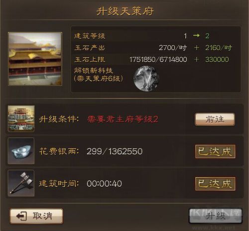 科學技術乃第一生產(chǎn)力。在《三國連環(huán)戰(zhàn)》中,提供了諸多科技選項以供選擇。主修不同科技,便可體驗不同的游戲玩法。(此處話題稍作偏離,現(xiàn)回歸正題)天策府的升級,不僅會使玉石產(chǎn)量得以提升,而且當天策府達到特定等級時,還將解鎖全新科技,進而帶來多樣化的游戲玩法。鑒于科學技術的重要性,天策府對于所有小伙伴而言,均應在第一時間進行升級 。