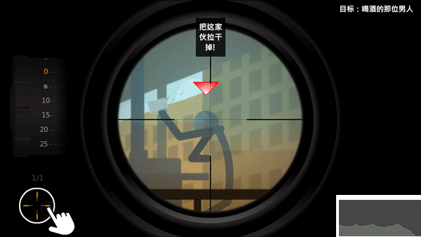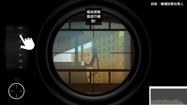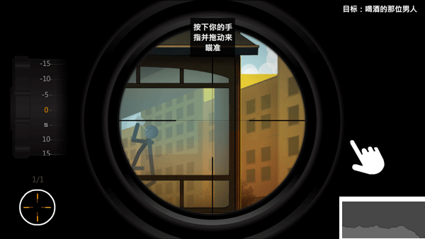 1、開啟《鷹眼 4 火柴人狙擊》中文版游戲,將準星對準目標,長按瞄準框并實施拖動操作 。