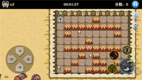 3、利用地形優(yōu)勢:觀察關(guān)卡地形,借助墻壁、障礙物保護(hù)自己或增強(qiáng)炸彈威力。