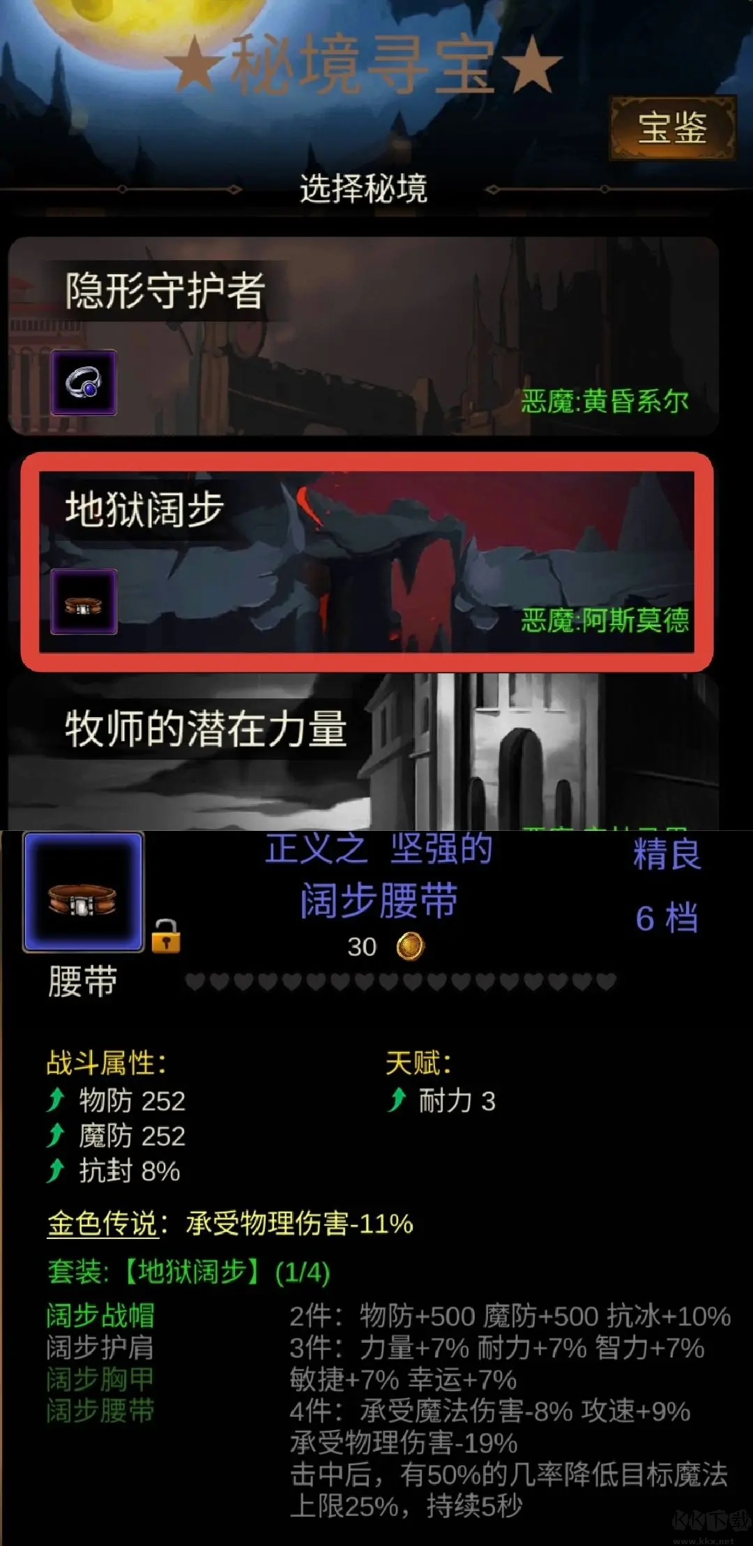最后再去地獄闊步副本隨便撿個(gè)腰帶(+物免),留著備用(如人魔10)。