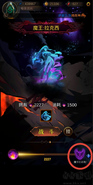 此后如果有魔能可以去“火焰之河”,點(diǎn)擊右下角魔王頭像刷1500魔王拉克西,魔王還能產(chǎn)出17升護(hù)肩、軍神項(xiàng)鏈、海蛇衣、各種稀奇古怪的佩等裝備,極大提升實(shí)力。(也可繼續(xù)刷500魔王,以量取勝)