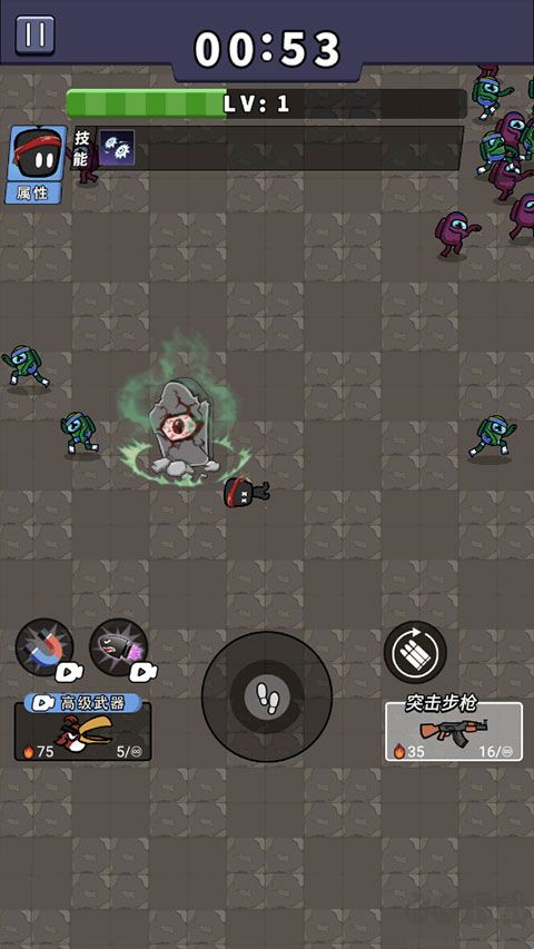 3、滑動(dòng)中心按鈕以躲避敵方攻擊,與敵方保持適當(dāng)距離。英雄將自動(dòng)射擊并自動(dòng)刷新子彈