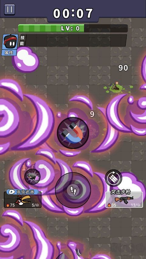 4、在場(chǎng)地內(nèi),將隨機(jī)掉落高級(jí)武器及道具,諸如炸彈與磁鐵等。一旦發(fā)現(xiàn),煩請(qǐng)即刻點(diǎn)擊;