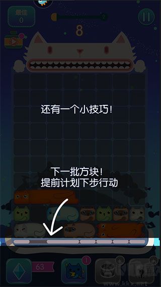 3、另有一項小技巧,針對下一批方塊,需提前規(guī)劃后續(xù)行動。