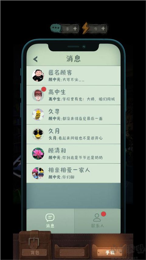 6、最為關(guān)鍵的是消息頁面。能夠與游戲中的緣主進行交流溝通,并獲取一些用于推理的線索 。