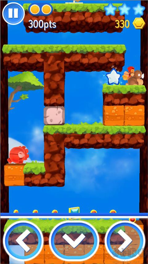 打 boss 簡單,躲開尖尖,等尖刺出后用泡泡打,擊敗 boss 吃金星可三星過關(guān)。