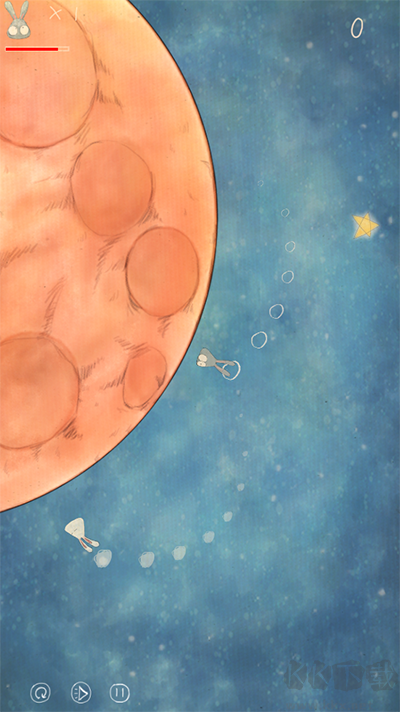 使其與另一只兔子相遇,兩只兔子相遇后即可增加生命值。在生命值耗盡前,盡可能達(dá)成最多的環(huán)繞月球圈數(shù)即可。