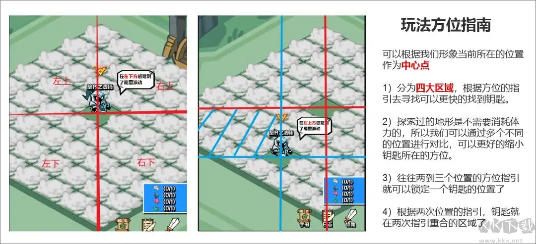 1)分為四大區(qū)域,根據(jù)方位的指引去尋找可以更快的找到鑰匙。